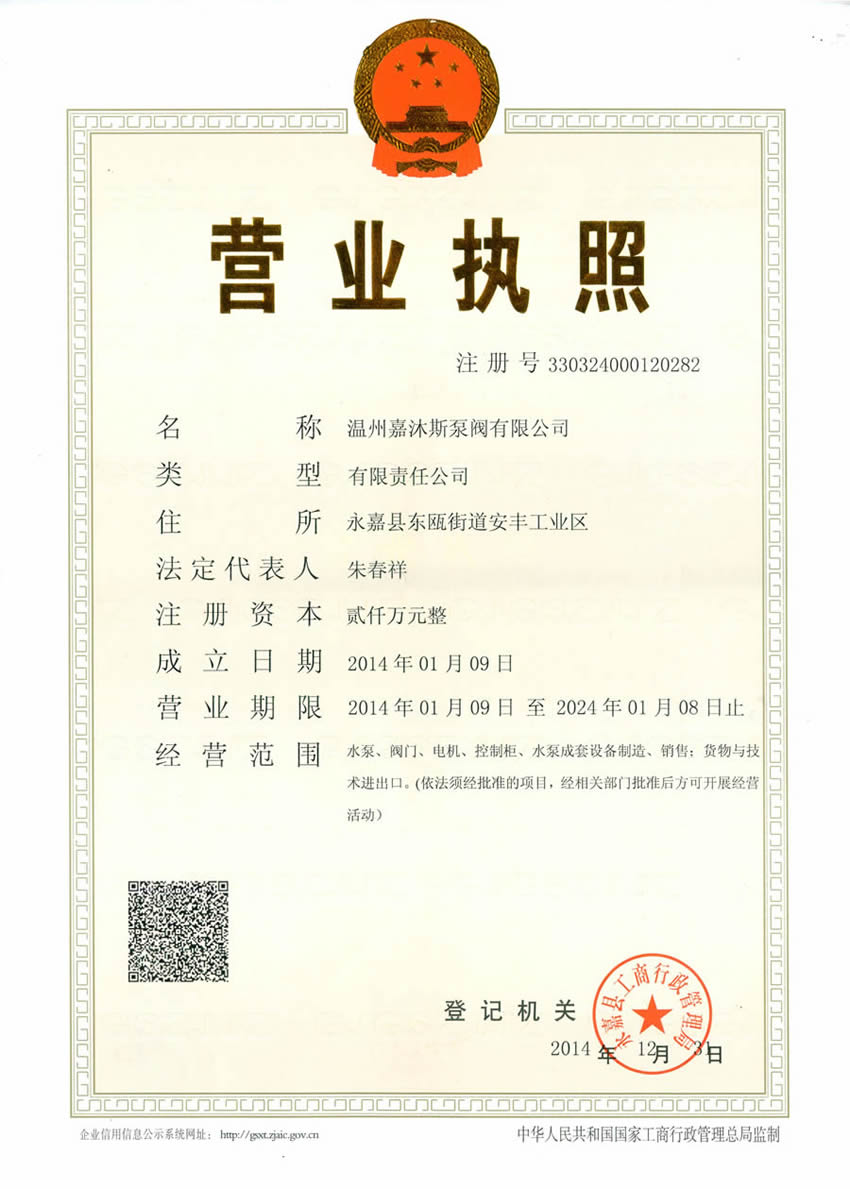 嘉沐斯營業執照