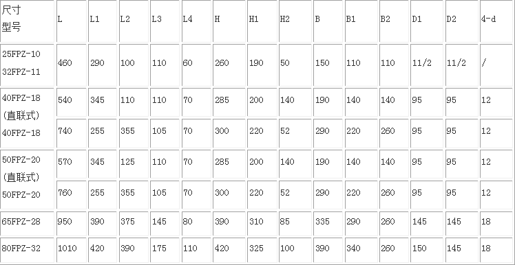 耐酸塑料自吸泵安裝尺寸表(單位:mm)