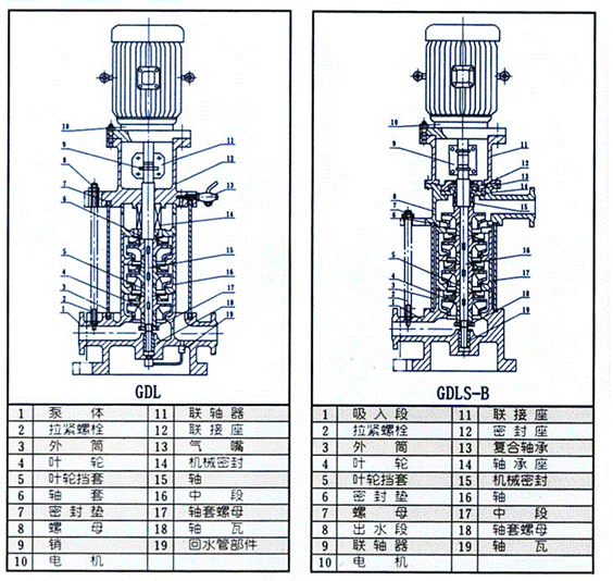 GDL立式多級管道離心泵是本公司結合用戶的使用要求及消防有關標準,并根據JB/TQ6435.2-92標準設計制造的新一代產品。